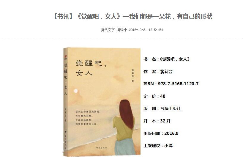 身心靈修行導師裴莉蕓老師合作出版新書女人需要覺醒,以“輕小說”形式開解當代女性的種種隱秘困擾,誠意分享女人的“覺醒、療愈、重生”的專屬幸福。男生慎入哦!